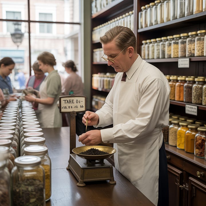 A surprising detail: Early “tare” practices - deducting the weight of your container - were handwritten in ledgers, a small but vital courtesy that made refill fair.